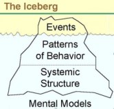In two blogs, Digging for Root Causes of Global Crises and Finding the Root Causes of BIG Problems, we learn about the iceberg. A very simple and useful tool for looking below the surface of actions and patterns of events to discover structural causes and the mental models (worldview, assumptions etc.) that direct human behavior. Mental models are further explored in “Which Comes First – Sustainable Policies or Sustainable Behavior?”