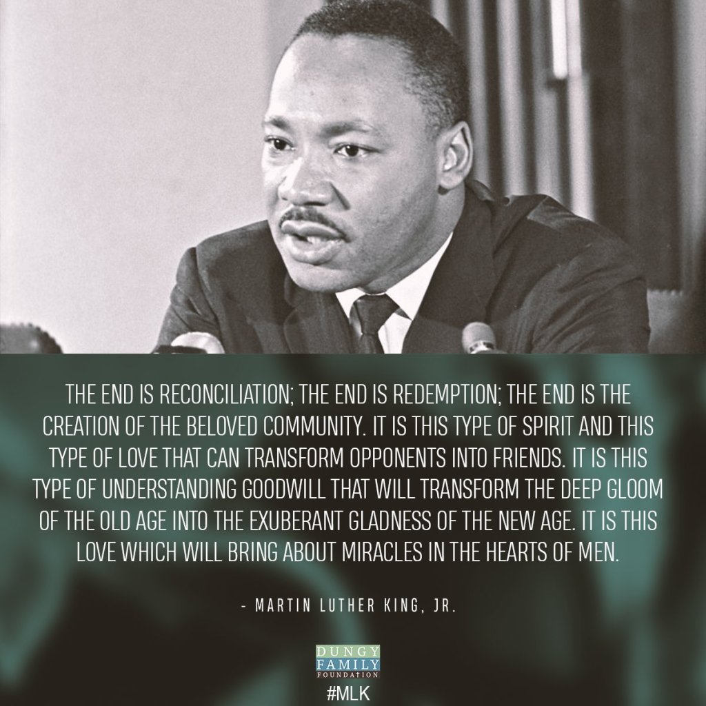 But notice as well what King is not saying. He is not saying what we are often accustomed to hearing in our highly competitive society: that the end goal is a decisive — or even crushing — victory over our opponents. For King, building Beloved Community requires the even harder work of reconciliation, redemption, and being in right relationship, of “transforming opponents into friends.”