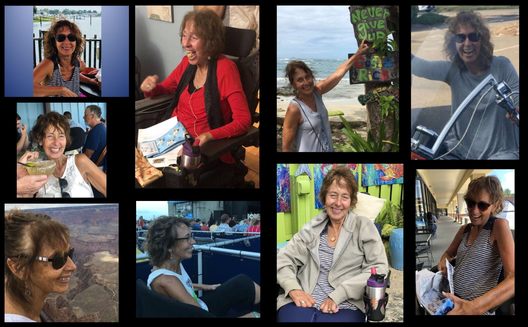 Thanksgiving was approaching and I asked her to write a letter to her network of friends and family. It took her hours, since she had little control of her hands. Nevertheless, she wrote in a letter we sent to you all…. “I am grateful for each and every one of you. I’m thankful for the walks around the neighborhood, the prayers, the outings, the problem solving to make situations work for me, the kisses and hugs, the food, the txt, the phone calls, my new bathroom (thanks Dad), the chats on the deck (some serious and some hysterically funny) and the shoulders to cry on.“